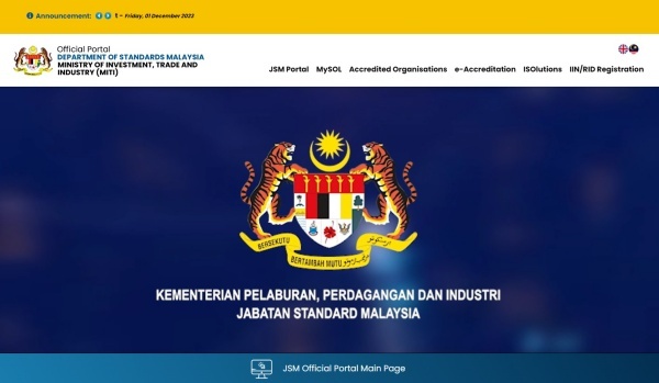 ▲ 말레이시아 표준부(Department of Standards Malaysia, DSM) 홈페이지