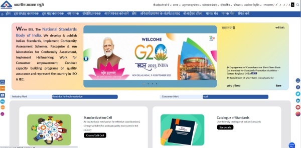 ▲ 인도표준국(Bureau of Indian Standards, BIS) 홈페이지