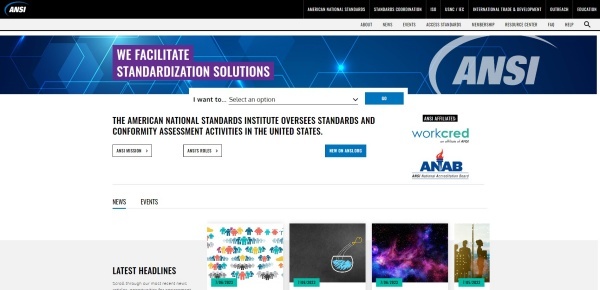 ▲ 미국표준협회(American National Standards Institute, ANSI) 홈페이지