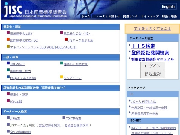 ▲ 일본산업표준조사회(日本産業標準調査会, Japanese Engineering Standards Committee, JESC)
