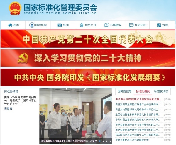 ▲ 중국 국가표준화관리위원회(Standardization Administration of China, SAC) [출처=홈페이지]