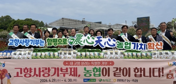 농협중앙회(회장 강호동)에 따르면 2026년 4월30일(목) 전남 함평 엑스포공원 나비대축제 현장에서 고향사랑기부제 홍보 및 ‘농심천심’ 우리 농산물 나눔 캠페인을 실시했다.